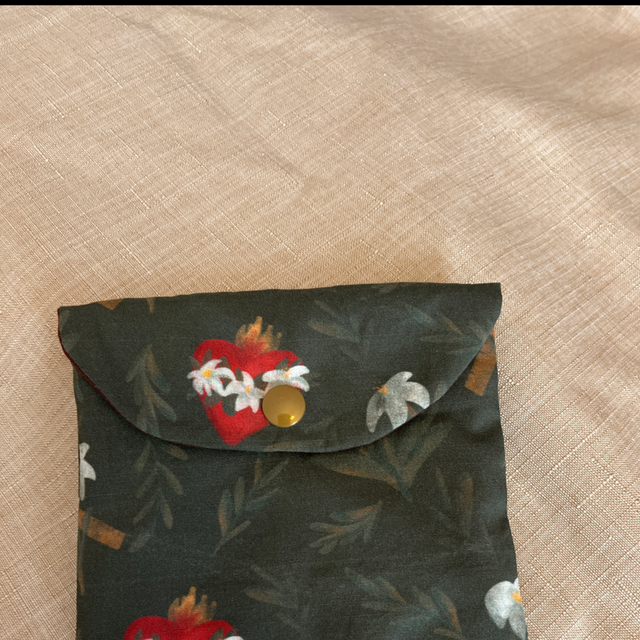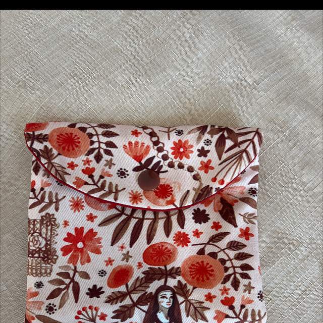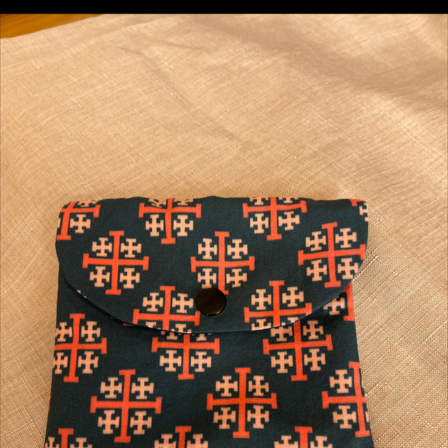 L’étui à chapelet est une pochette de 9cm * 10cm environ, avec un bouton pression pour une utilisation simple.