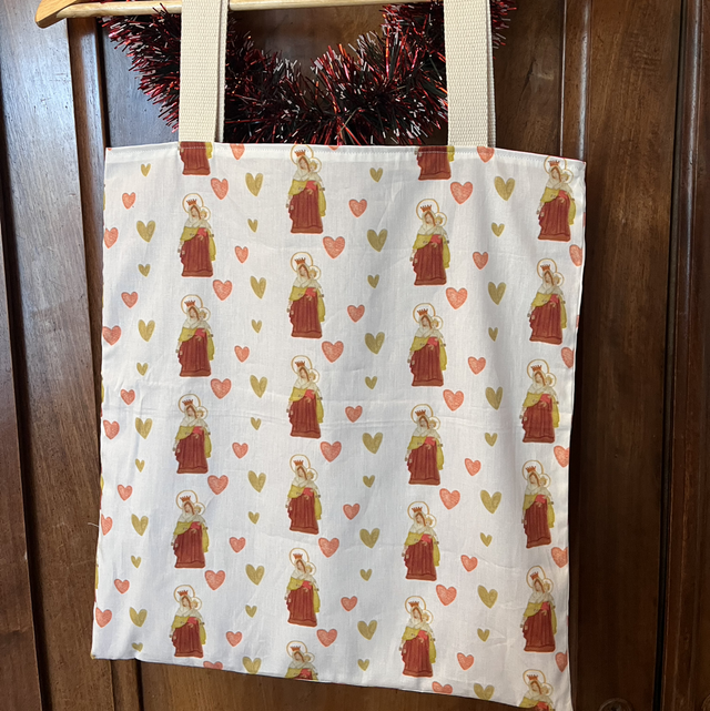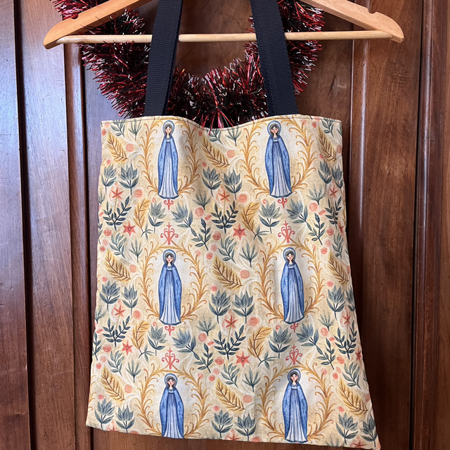 Ce tote bag au format 38×40 cm est pensé pour accompagner votre quotidien avec beauté et foi. Réalisé dans des tissus ornés de Vierges, croix et symboles chrétiens, il apporte une touche spirituelle tout en restant discret et raffiné.